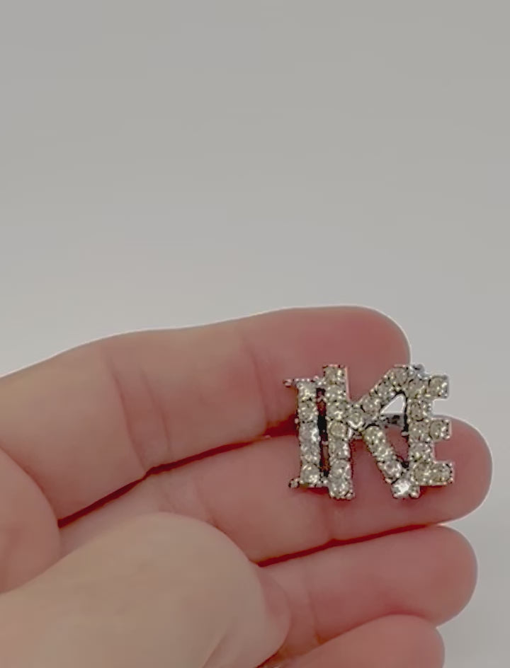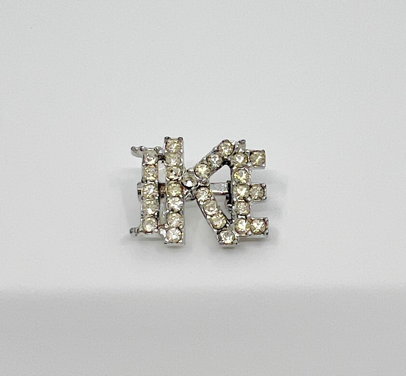 vintage costume rhinestone pin IKE (Eisenhower) signed, 1950s era, 22mm wide
