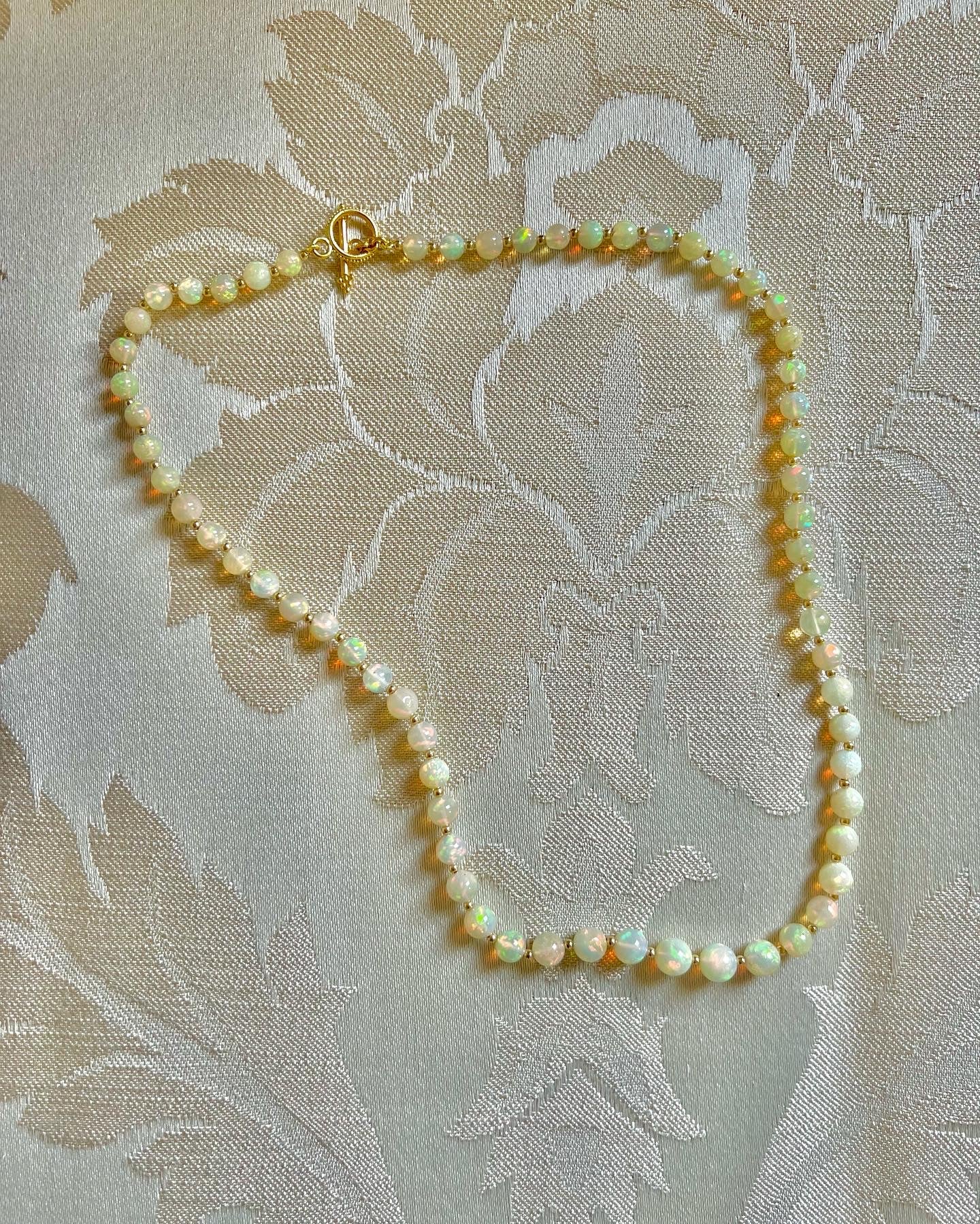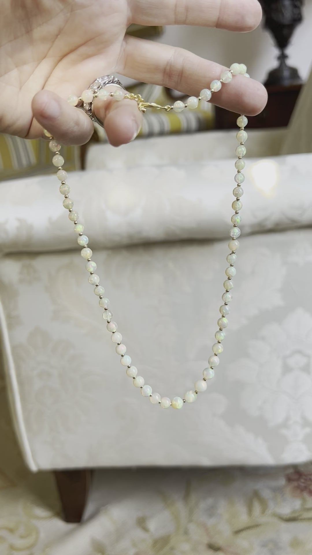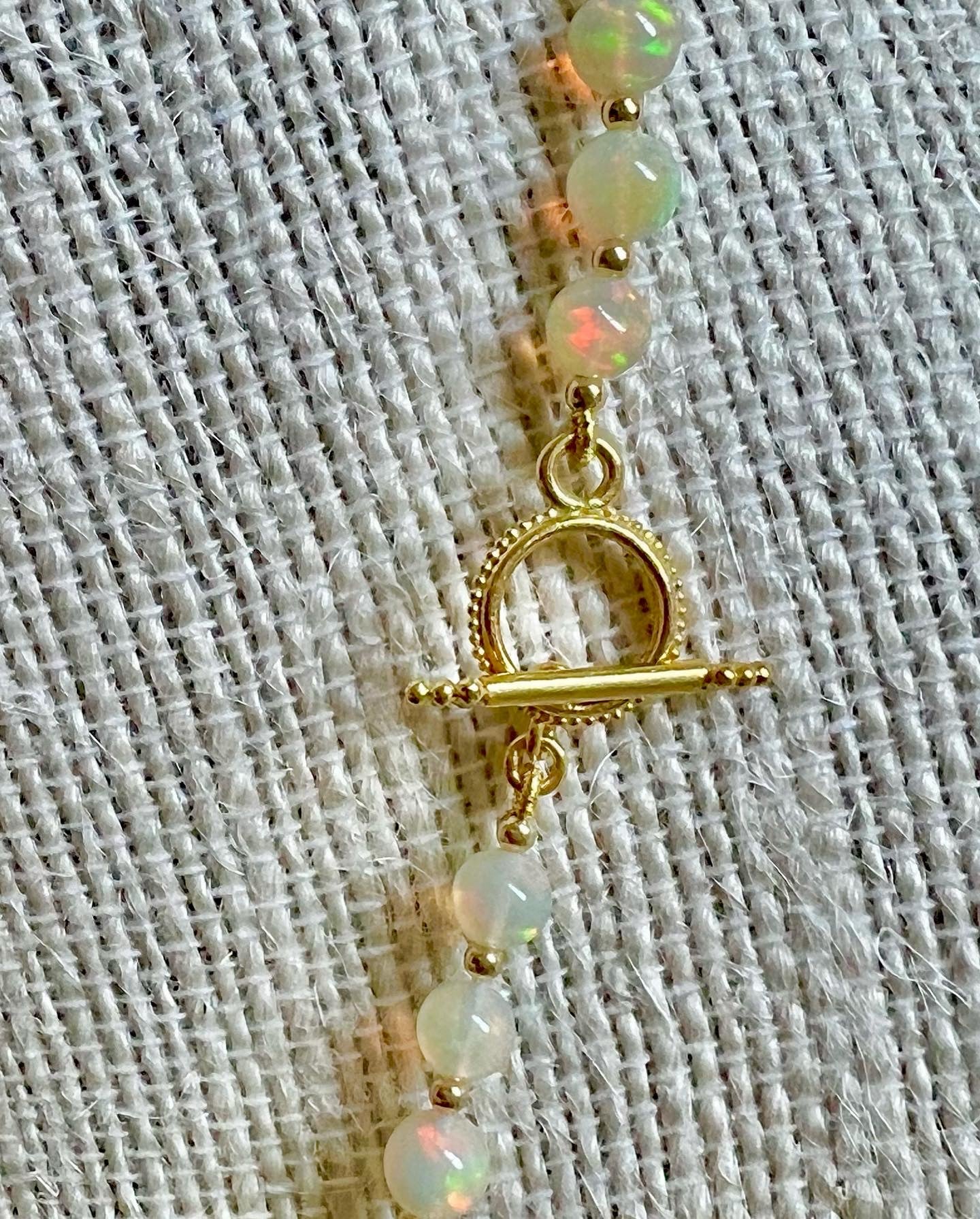 graduated round opal bead necklace with 22kt toggle clasp and 18kt bead accents, 17" long, opals 4.5 - 6.5mm